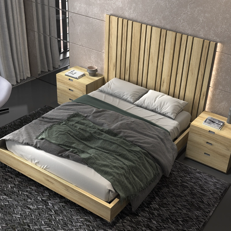 Cada dormitorio se fabrica a medida, seleccionando materiales resistentes y acabados duraderos: desde tonos naturales hasta lacados en brillo o mate, con detalles que elevan el nivel estético y funcional del conjunto.
